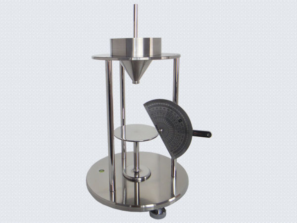 足夠滿溢料盤的粉塵從漏斗口注入到水平料盤上;測量粉塵堆積斜面與底部水平面所夾銳角,即粉塵安息角。