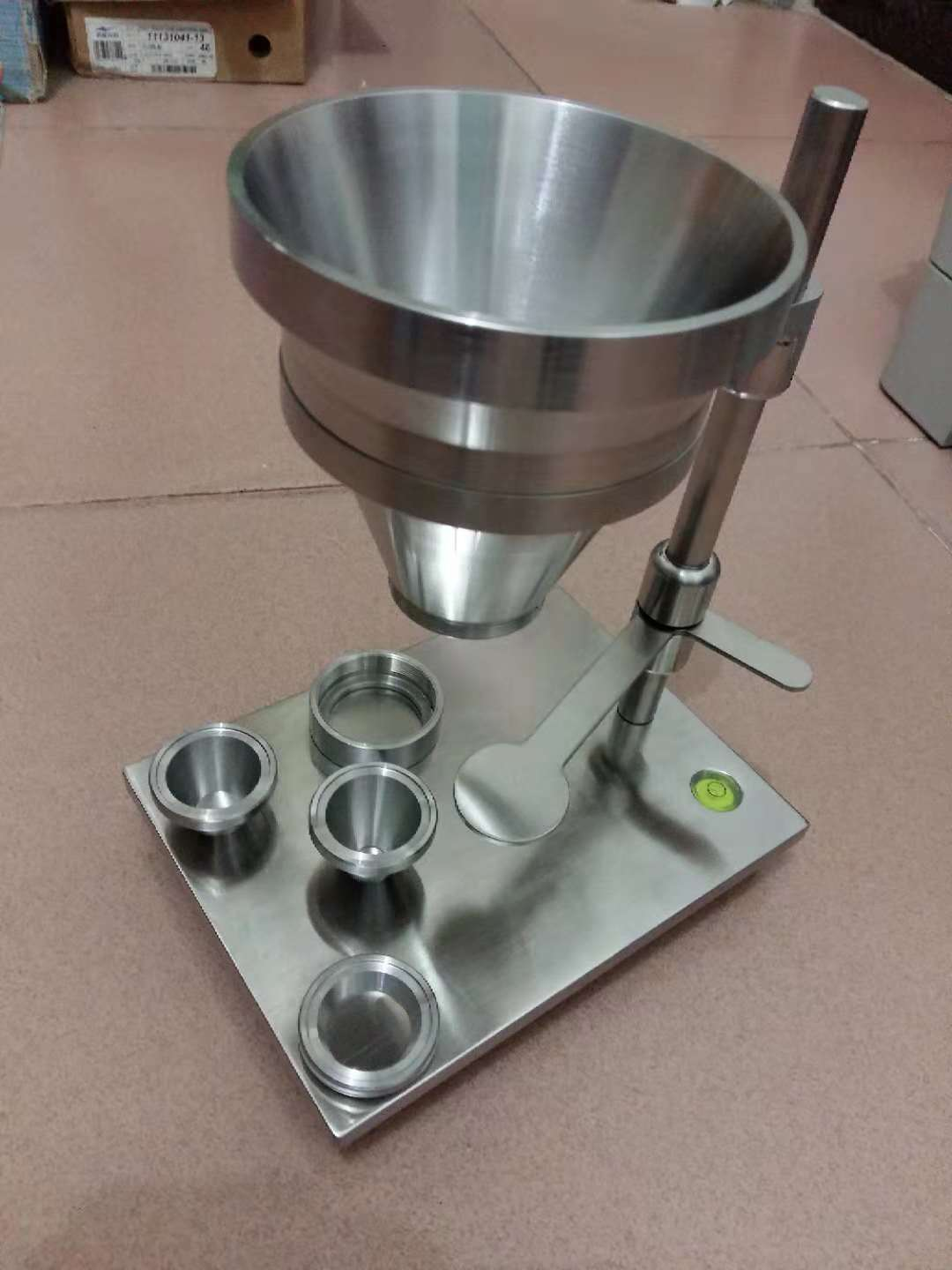 三種規(guī)格,角度40度;依據(jù)標(biāo)準(zhǔn)要求如果測(cè)試的試料流動(dòng)性比較差,不能完全流動(dòng)或者根本流不動(dòng)時(shí),因更換更到口徑的漏斗試驗(yàn),并在試驗(yàn)報(bào)告中注明。