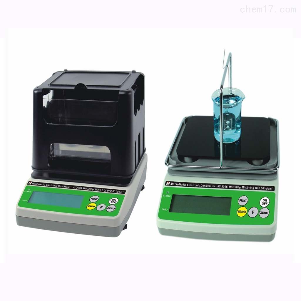 ①將產品放入測量臺,測空氣中重量,按ENTER鍵記憶。 ②將產品放入水中測水中重量,按ENTER鍵記憶,顯示密度值。