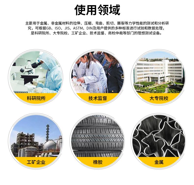 本機用于金屬及非金屬(含復合材料)的拉伸、壓縮、彎曲、剪切、剝離、撕裂、保載、松弛、往復等項的靜力學性能測試分析研究,可自動求取ReH、ReL、Rp0.2、Fm、Rt0.5 、Rt0.6、Rt0.65、Rt0.7、