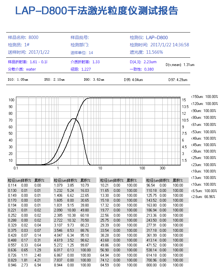 | 測試范圍 | 0.1μm -800μm |