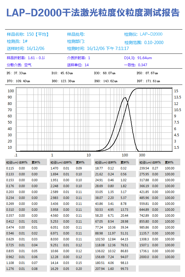 | 執行標準 | ISO 13320-1:1999;GB/T19077.1-2008 |