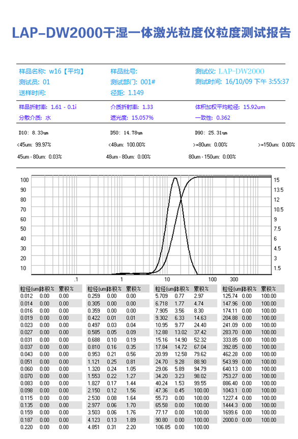 | 統計方式 | 體積分布和數量分布,以滿足不同行業對于粒度分布的不同統計方式 |