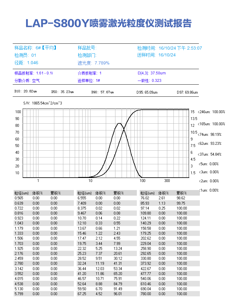 | 統計方式 | 體積分布和數量分布,以滿足不同行業對于粒度分布的不同統計方式 |