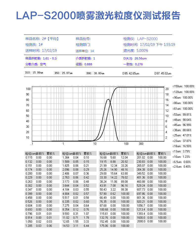 | 自行DIY | 用戶自定義要顯示的數據,根據粒徑求百分比、根據百分比求粒徑或根據 |